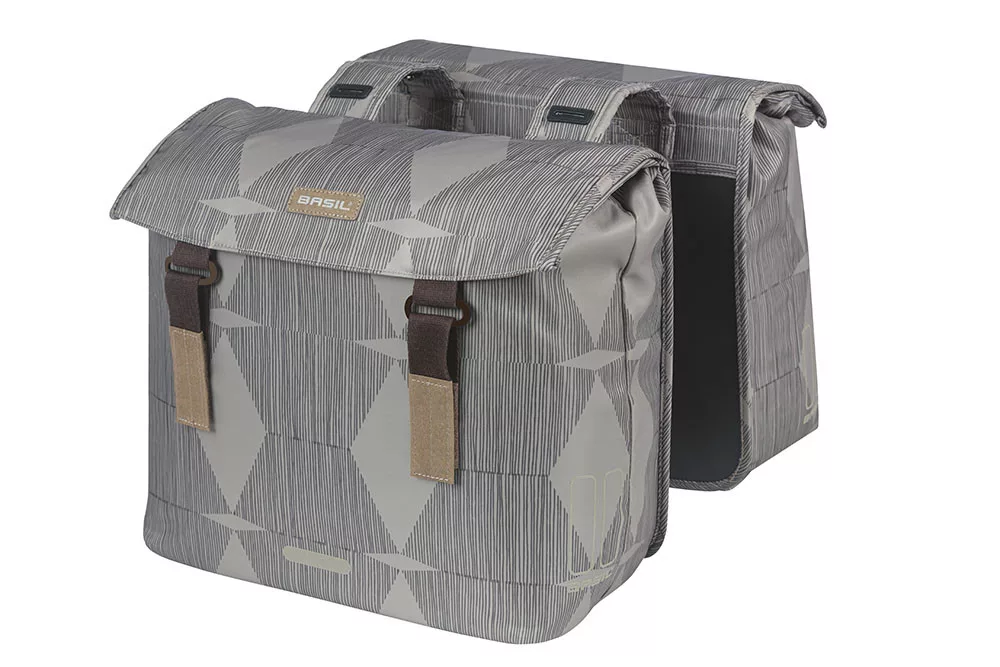 Basil dupla táska Elegance Double Bag, szürkeÁltalános tudnivalókA dupla táskák a csomagtartóra rakhatók és 2 oldalra lógnak le. Ezeket a táskákat ajánljuk több napos túrákhoz vagy olyankor amikor sok dolgot kell magunkkal vinnünk.A Basil gondolt mindenkire amikor a táskáit megtervezte:Extrém túra vonal - Miles / Urban DryNői vonal - Boheme / Magnolia / Wanderlust / Ever-GreenSportos vonal - Sport design / DiscoveryVárosi vonal - City / GoGazdaságos vonal - Urban Load / Tour / MaraTermékelőnyökVÍZLEPERGETŐ - anyagát tekintve vízlepergető, így a kisebb esőknek remekül ellenáll.LÁTHATÓSÁG - a fényvisszaverők jobb láthatóságot biztosítanak rossz látási viszonyok mellett.DIZÁJN - letisztult, divatos megjelenés.Műszaki információRögzítés: szíjakkal rögzíthető a csomagtartóra.Kompatibilitás: Universal Bridge system (MIK, i-Rack, Carrymore, Racktime - adaptert nem tartalmaz)A MIK egy gyorscsatlakozási rendszer, amit a Basil főmérnöke fejlesztett ki. A Carrier Plate (BA 70170) segítségével szinte bármely csomagtartó MIK kompatibilissé tehető, de vannak gyárilag MIK kompatibilis csomagtartók (pl.: BA 60001). A táskára/kosárra (ha az nem tartozék) pedig az Adapter plate-et (BA 70171) kell rögzíteni. Így stabilan és gyorsan rögzíthető a táska/ kosár a csomagtartóhoz. Kapacitás: 40-49literKülső méretei: 16 x 36 x 32 cm