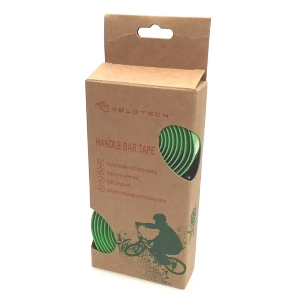 EVA alapanyagú, szivacsos kerékpár kormányszalagSzín: zöldFekete, műa. kormányvég dugó.Kartondoboz csomagolásban