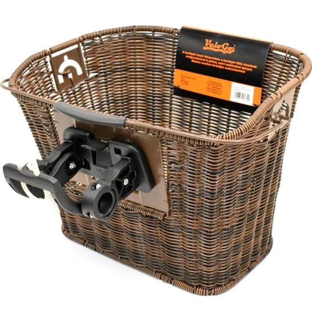 Minőségi VeloGo kerékpár első kosár rattan hatású, Kormányra rögzíthető gyorskioldós adapterrel Szélessége 34cm, magassága 26cm, mélysége 26cm. 10db / csomag %