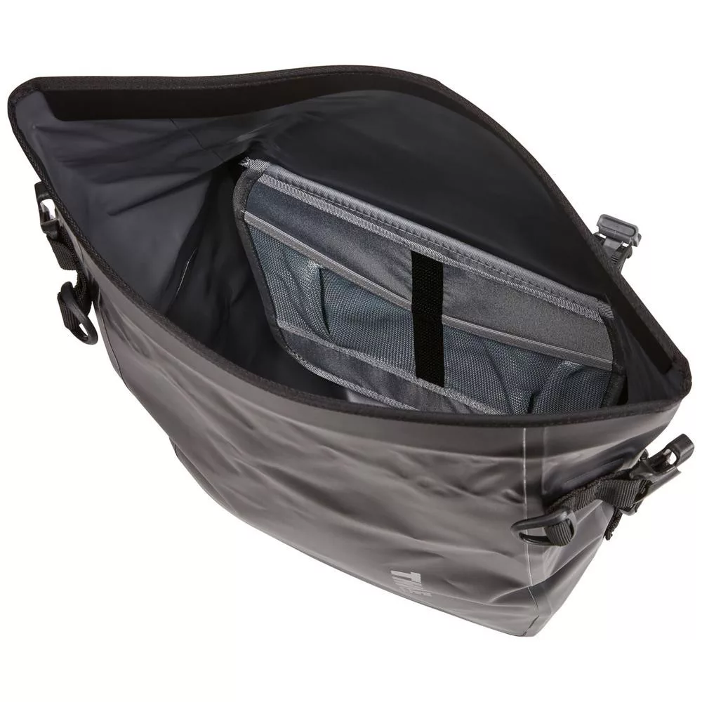 A THULE PNP SHIELD PANNIER kerékpártáska tökéletes megoldást nyújt azoknak, akik szeretnék könnyen elérhető és rendezett módon tárolni kerékpáros felszerelésüket bármilyen út során. A táska 17 literes tárolókapacitással rendelkezik, és egyszerűen felszerelhető a kerékpár csomagtartójára. A táska praktikus zsebes kialakítása lehetővé teszi a kisebb eszközök és szerszámok külön tárolását az első zsebben, így azok könnyen megtalálhatóak maradnak. A levehető kereszt vállszíj lehetővé teszi a kényelmes hordozást, és a külső zsebben akár a komputered vagy pénztárcád is biztonságban tartható. A táska belső része bélelt és vízálló anyaggal van bevonva, így könnyedén tisztítható, és a cipőzseb különösen praktikus megoldást nyújt a sáros vagy nedves ruhák tárolására. A sokoldalúan használható fedélzsebben pedig további felszerelést vagy kiegészítőket helyezhetsz el. A fekete, világos kék és sárga színváltozatok közül választhatsz, és a 13 literes vagy 25 literes tárolókapacitások közül válogathatsz. A THULE PNP SHIELD PANNIER táska ideális választás 3-5 napos országúti vagy hegyi kerékpározáshoz, és minden fontos felszerelést könnyedén elhelyezhetsz benne.